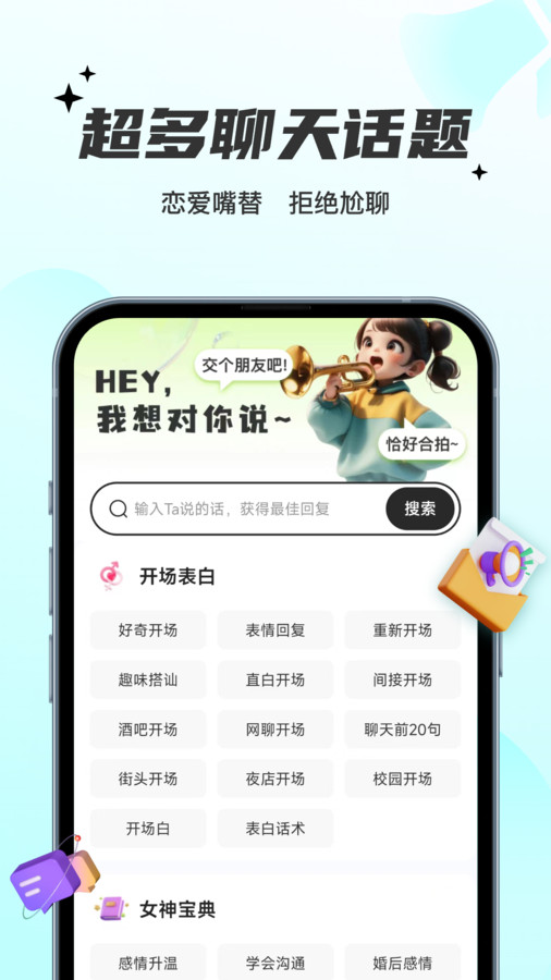 1、这款软件引领时尚潮流,帮助挖掘各种爱情话术;