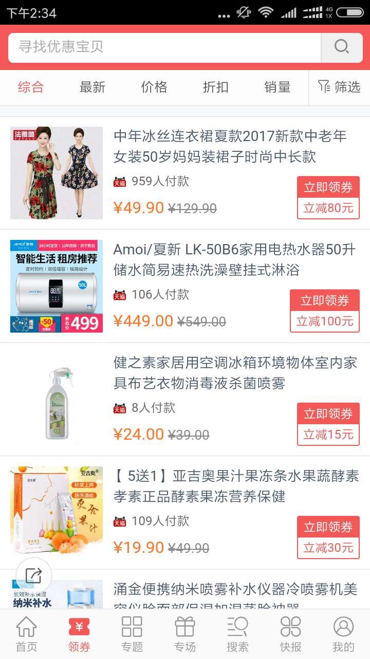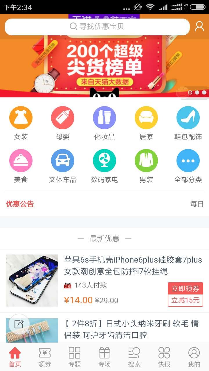 1.汇聚全网优惠券,为您提供一站式优惠导购服务的电商软件;2.商品类别涵盖女装、化妆品、数码产品、母婴用品、家居用品等;