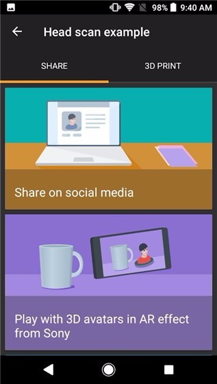3、在分享页面中可以分享社交媒体,还可以在索尼的AR效果中与3D虚拟形象互动;