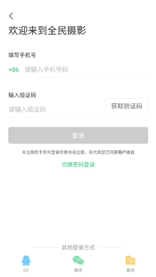 2、在这里可以进行输入手机号和手机验证码登录,也可以切换到密码登录、还支持其它登录方式;