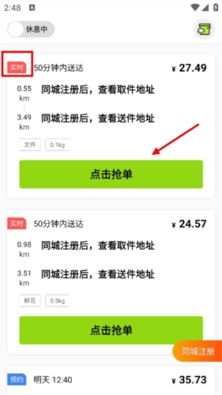 4. 浏览并找到你想要配送的订单,点击“抢单”按钮即可成功接单。