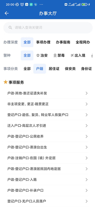 4、在软件的办事大厅,可以进行具体事项的在线办理、查看办事指南,并享受全流程网上办理服务。