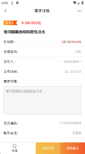 1、发布悬赏任务,在此发布任务的时候带上赏金即可提升任务被接的概率;