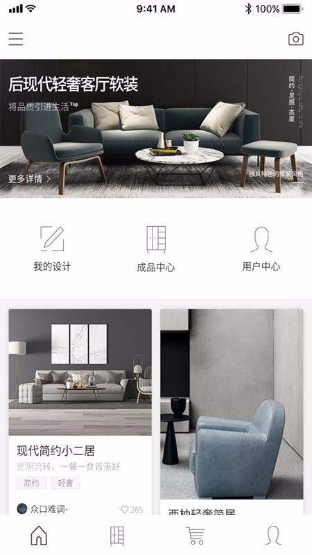 2、首页推送的装修风格以及家居很丰富,随心下单;