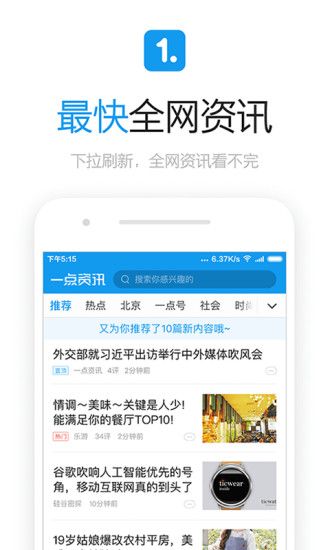 1、【海量内容源】聚合超过 5000 家内容站点,热点资讯一手掌握。更有超过 7 万家头条号每日为你创作新鲜精彩内容,不远游,知天下。24 小时刷不停,填充你所有碎片时间。