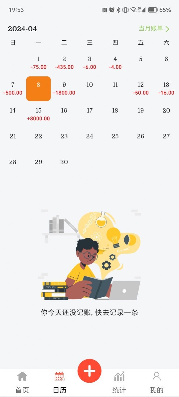 1、手机记账特别的方便,首页功能一目了然的哦;