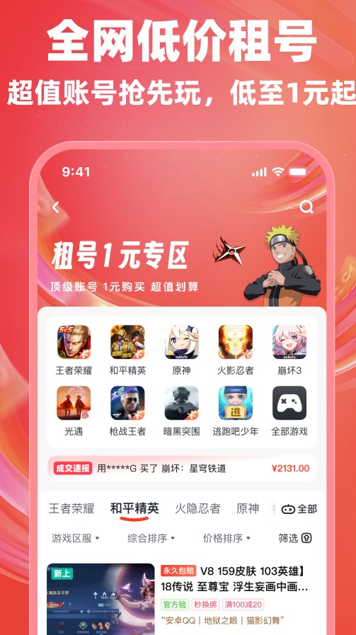 3、这里可以让你放心租赁游戏的账号,快乐的去玩游戏。