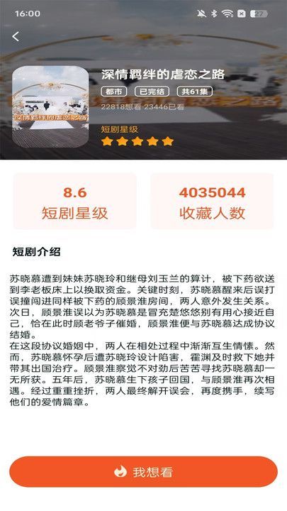 2、可以将喜欢的短剧加入收藏,方便在 我的短剧板块快速找到;