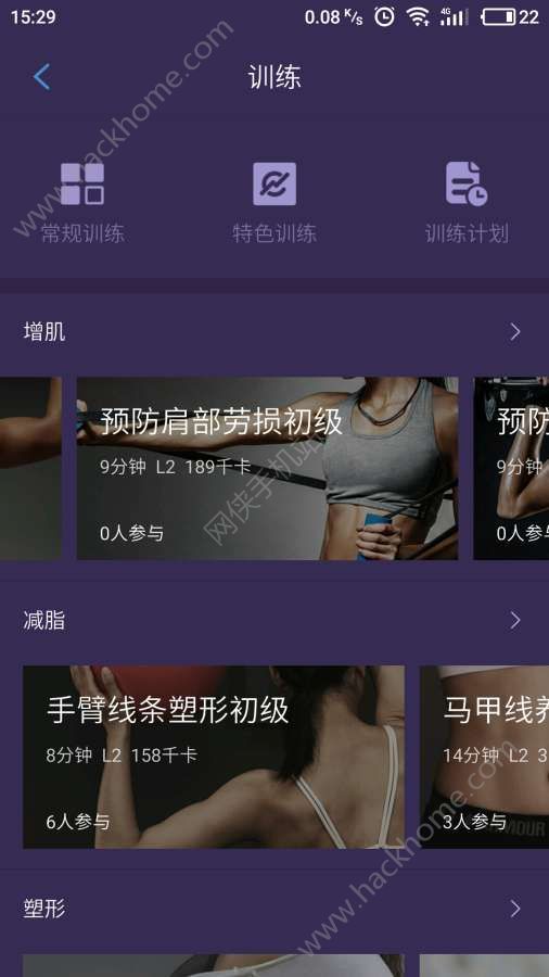 4.训练计划针对不同人群、各种器械和阶段健身目标组合编排,适用最广泛的健身场景。