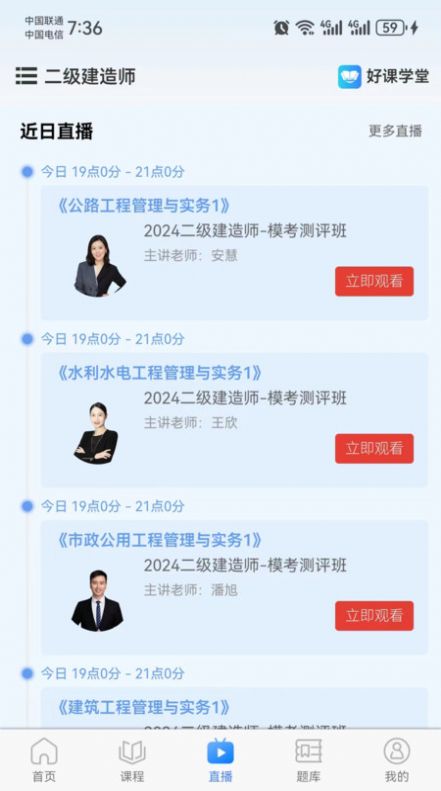 好课学堂app是为大家提供的在线教育培训学习软件,覆盖卫生医疗、金融财会、建筑、升学考试、职业资格证书领域的培训,考试辅导的服务,有名师给大家授课,提供深度解析的教材,让你可以全面的获取教学的资料,可以有计划的学习,更好的利用碎片时间去刷题的一个综合应用软件。