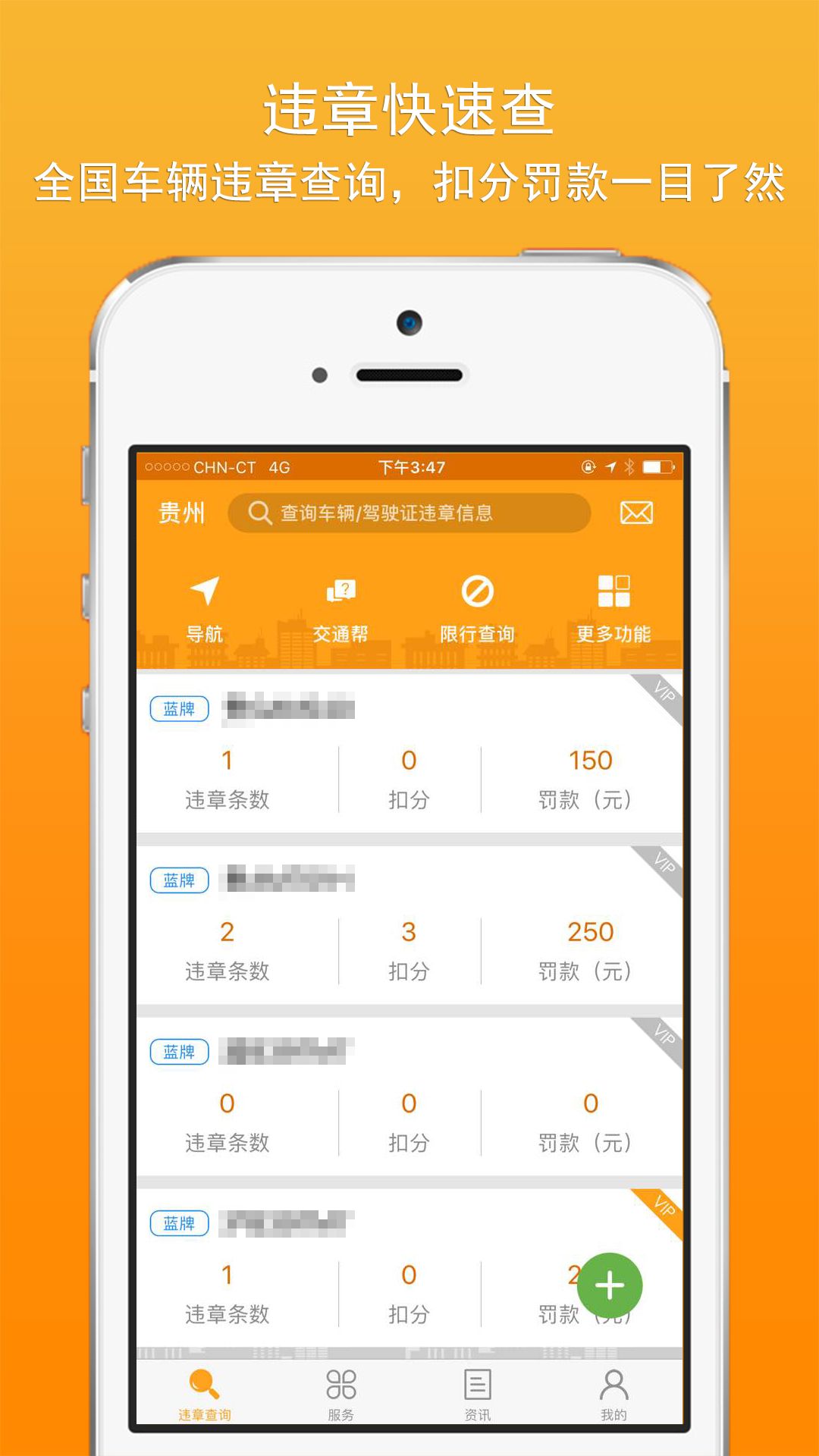 1、查询违章:查违章详情、驾证记分,一目了然,足不出户,自由更便捷;2、限行规定:日期及路段查询,拟定出行计划,记录出行历史,规划出行方案;