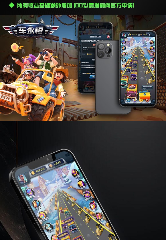 车永恒app是一个刺激游戏和广告任务兼职结合的平台,大家可以成为勇敢的车手,和更多的玩家在赛道去争夺挑战,是一个激情十足的小游戏,也可以日常的看广告,做推广的任务去分红,能玩幸运的转盘,参与限时的活动,可以获得专属的礼包的一个综合软件。