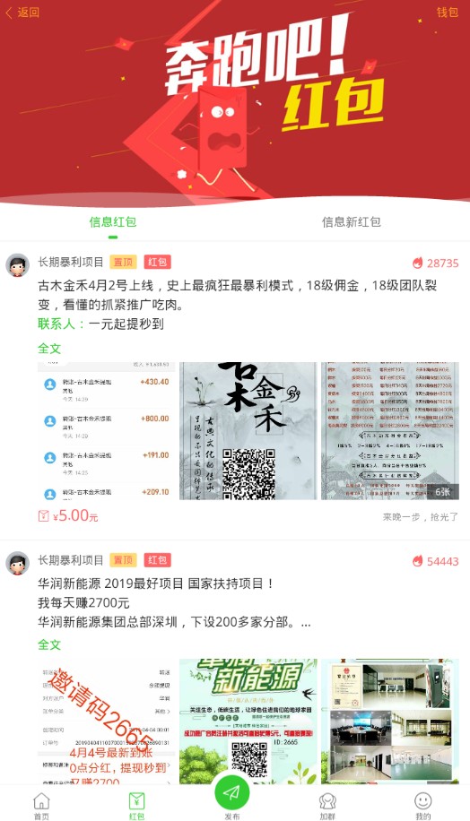 2.是一个集发布广告,产品,项目,微信引流,做任务领红包,推广赚钱于一身的平台。