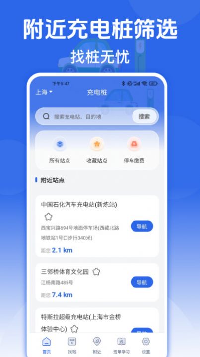 1. 利用先进的定位技术,准确捕捉您所在位置,为您提供最近的充电站信息;
