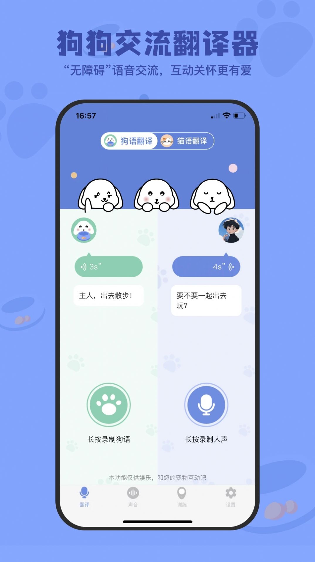 1. 语音翻译:采用先进的语音识别技术,助您照顾好宠物,很方便;