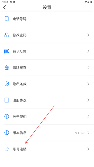 3、进入设置的页面内,点击下方账号注销的按钮。