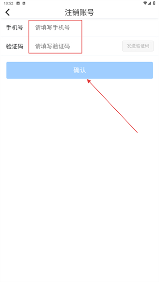 4、输入手机号、验证码,再点击确认即可注销成功。