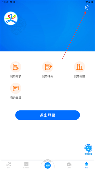2、进入我的页面内,点击右上角设置的功能按钮。