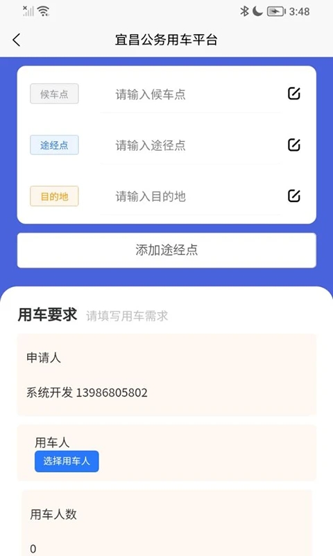 2、机关单位及干部可通过平台上自主申请车辆,避免混乱的传统用车方式带来的浪费与繁琐;