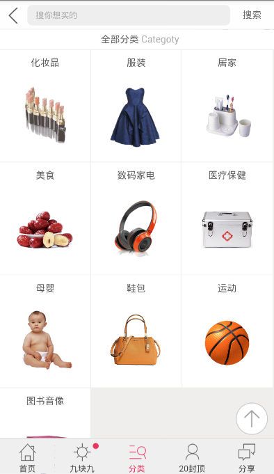 1.首页商品分类,提供多种分类进行选择;