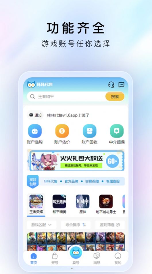 咔咔代售app是一款安全可靠、简单易用、高效便捷的游戏账号交易平台,通过提供多平台支持、专业团队服务和24/7客服支持,满足用户购买和出售游戏账号的需求,为用户提供安全可靠的交易环境,是玩家们值得信赖的选择。