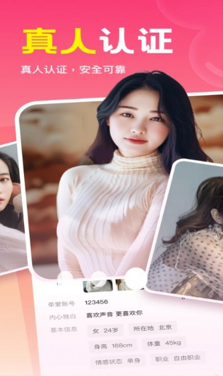 1. 实名认证系统,杜绝虚假账号,保证用户交友安全;
