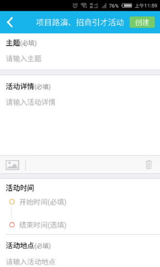 2、用户可以在应用程序中创建会议,输入会议的地点、时间、议程等信息;