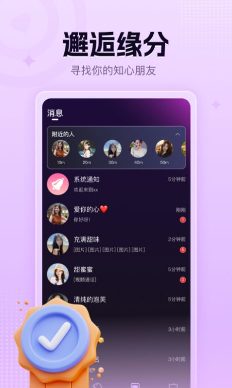 本地觅聊app是一款专注于本地交友的手机应用,旨在帮助用户在同城内寻找志同道合的交友对象。该应用融合了多种实用功能,致力于打造友好、安全的交友社区,建立真实的交友关系,促进社交互动,让用户在本地交友过程中更加畅快愉悦。