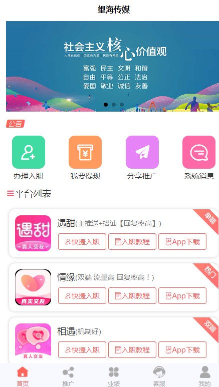 望海传媒app是一个在线推广一些聊天社交软件就可以赚钱的兼职软件,这里的操作不要什么技巧,是很适合喜欢社交,有一定的人脉的人群来使用的软件,直接在该平台接单,推广平台,达成拉新的目的就可以挣钱,是能快速的入职,学习推广的技巧,累积一定的收益的软件。