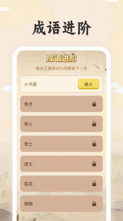 2、软件内置成语闯关游戏,让用户在娱乐中学习,激发学习兴趣;