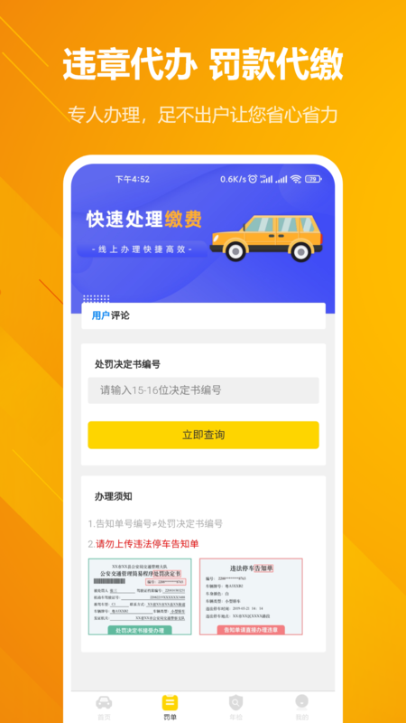 很好用的违章查询软件这款违章查询软件挺不错的,查询车辆违章挺方便的,还能代缴罚单。