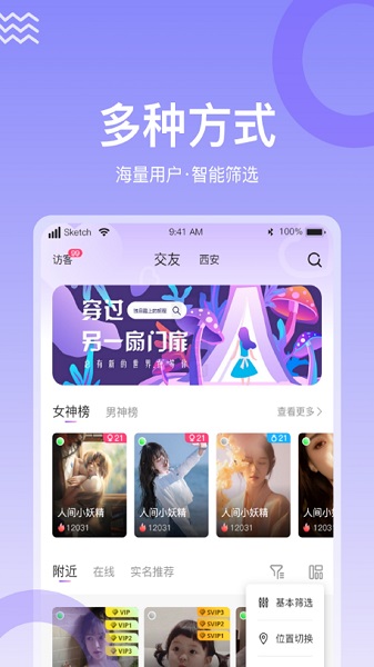 1.多种方式:可以通过附近的人、实名认证等方式找到合适的TA;
