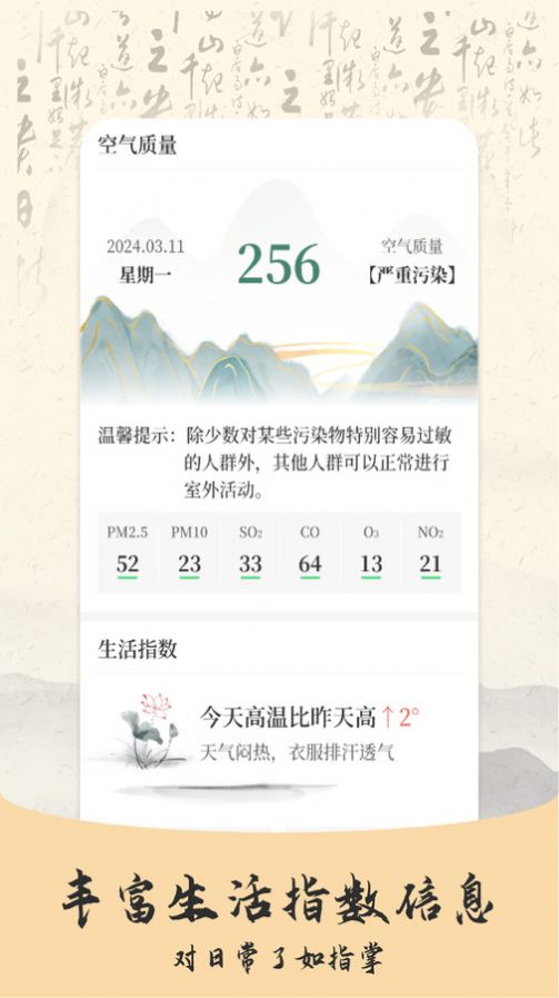 3、全方位了解当天天气情况,为外出出行提供准确参考。