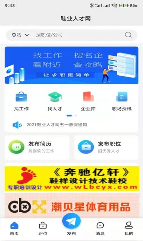 1、发布鞋业职位招聘信息,包括全职、兼职、实习等多种类型;