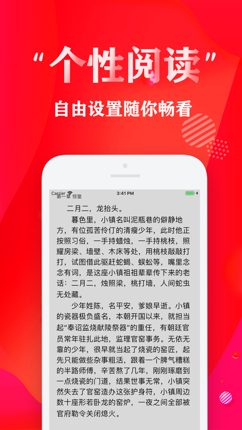 4、个性阅读体验、自由更换字体、背景、夜间模式、内容整齐排版、自定义阅读习惯。