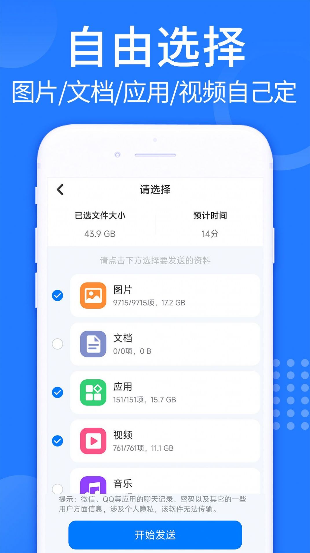 3. 图片、视频迁移:支持图片、视频等大容量文件的快速迁移。
