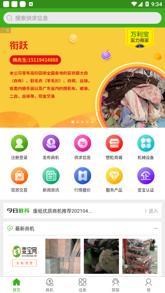 变宝网app是一款生活服务类的手机应用,为用户提供一个优质的废品回收平台,在线就可以买废品,涉及范围非常广泛哦!还有更多的服务哦!