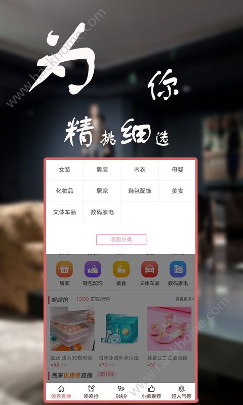 3.分类齐全,数码,男装,女装,家居,母婴,鞋包,配饰等栏目。为你的九块九挑选全面最划算的购物体验。