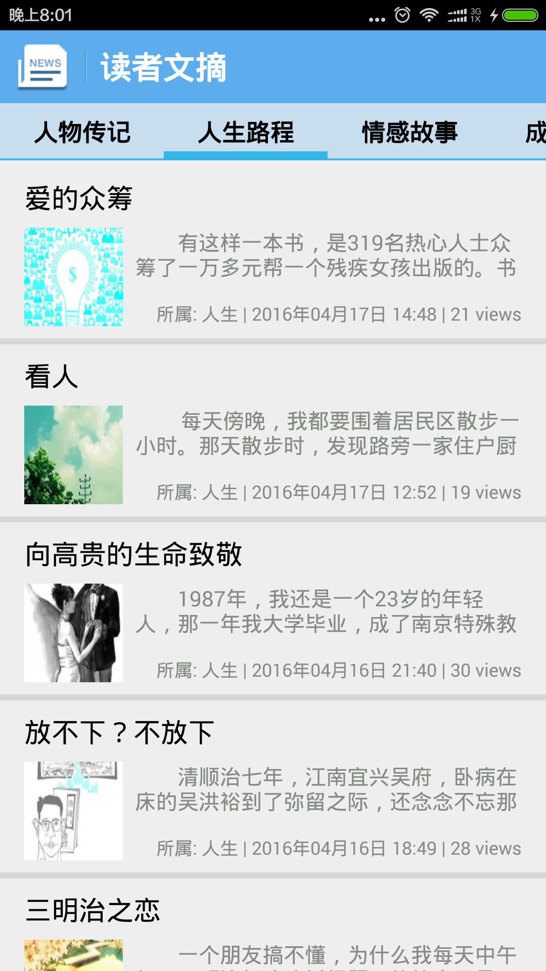 1、分享来自国内各大热门文摘、杂志、报纸、网络的经典美文;2、所有咨询全部都是免费阅读。