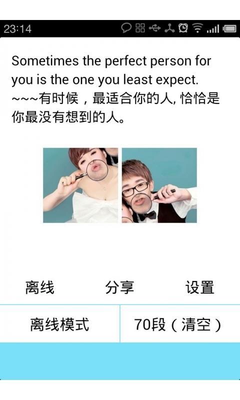 1.英语美文精品推荐应用,本软件收集英语美文、唯美爱情句子,贴身英语大口袋。唯美、实用、精彩英语大汇聚,软件无广告,可离线下载美文。2.英语美文,别样的异域风情,别样的浪漫情怀,那些话真的很有道理。