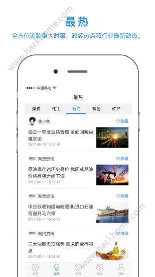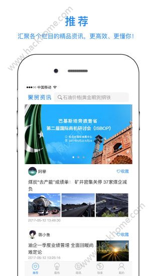 2、聚贸资讯下设推荐、最热、商讯等版块,覆盖重大时事、政经热点和行业动态,以及全球商讯发布服务。