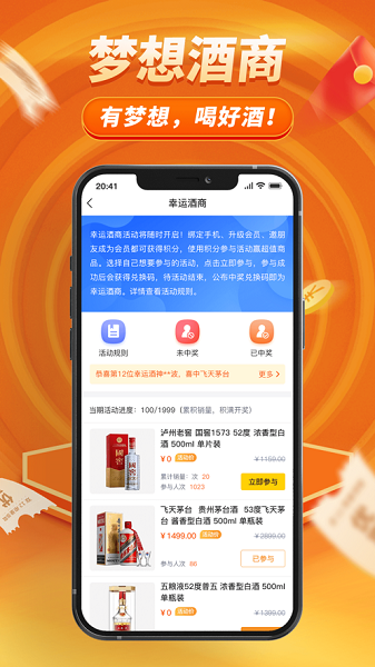 梦想酒商app是可以提供很好的酒水购物的软件,线上的操作和使用都是真实安全的,让需要的用户们能够随时选择自己需要的产品,这些内容都是保证正品的,可以在任何的时间里进行使用,全部的更新都是更有效的,大家能够快速的省下很多钱。