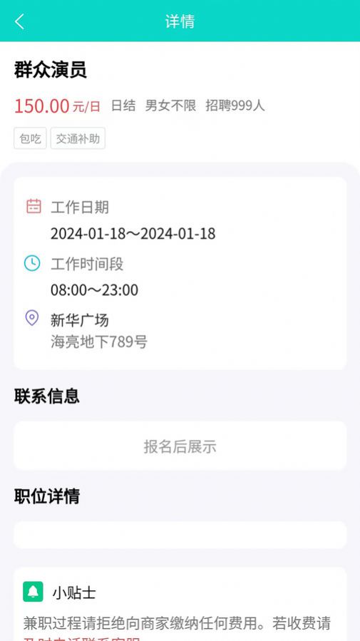 1、用户可以浏览和选择感兴趣的兼职任务,根据自身情况选择任务;