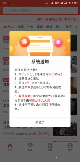 1.深受广大手机用户喜爱的掌上转发平台,每天都会有大量的资讯、文章可以为你分享,随时打开手机就可以查看详细的内容;