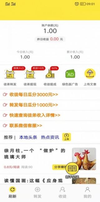 2、我们不仅仅可以在这里读书,还能通过转发等形式让自己的收入增加,一切的操作都是非常的简单。