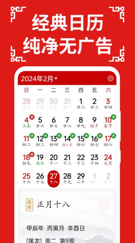 2、支持农历、阳历、节气查询,满足用户多样化的时间需求;