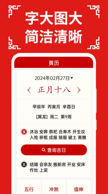 万年历日历大字版app是款不错的日历软件,可以说功能强大,日历信息更全,更精准,能给到大家易用的日历服务的软件,是可以以大字版展示,方便老年人和视力较差的用户使用,是他们日常生活的好帮手,整个的软件简洁清晰,大字显示,是操作简单易懂的综合应用软件。