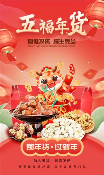 五福年货app,是一款专门为海量用户服务的应用程序。我们致力于提供一站式的年货购买以及赚钱平台服务,为用户带来全新的购物和理财体验,用户可以通过app在线购买各种年货,无需排队等候,我们提供从厂商直接买入的优质商品,价格合理,品质有保障。
