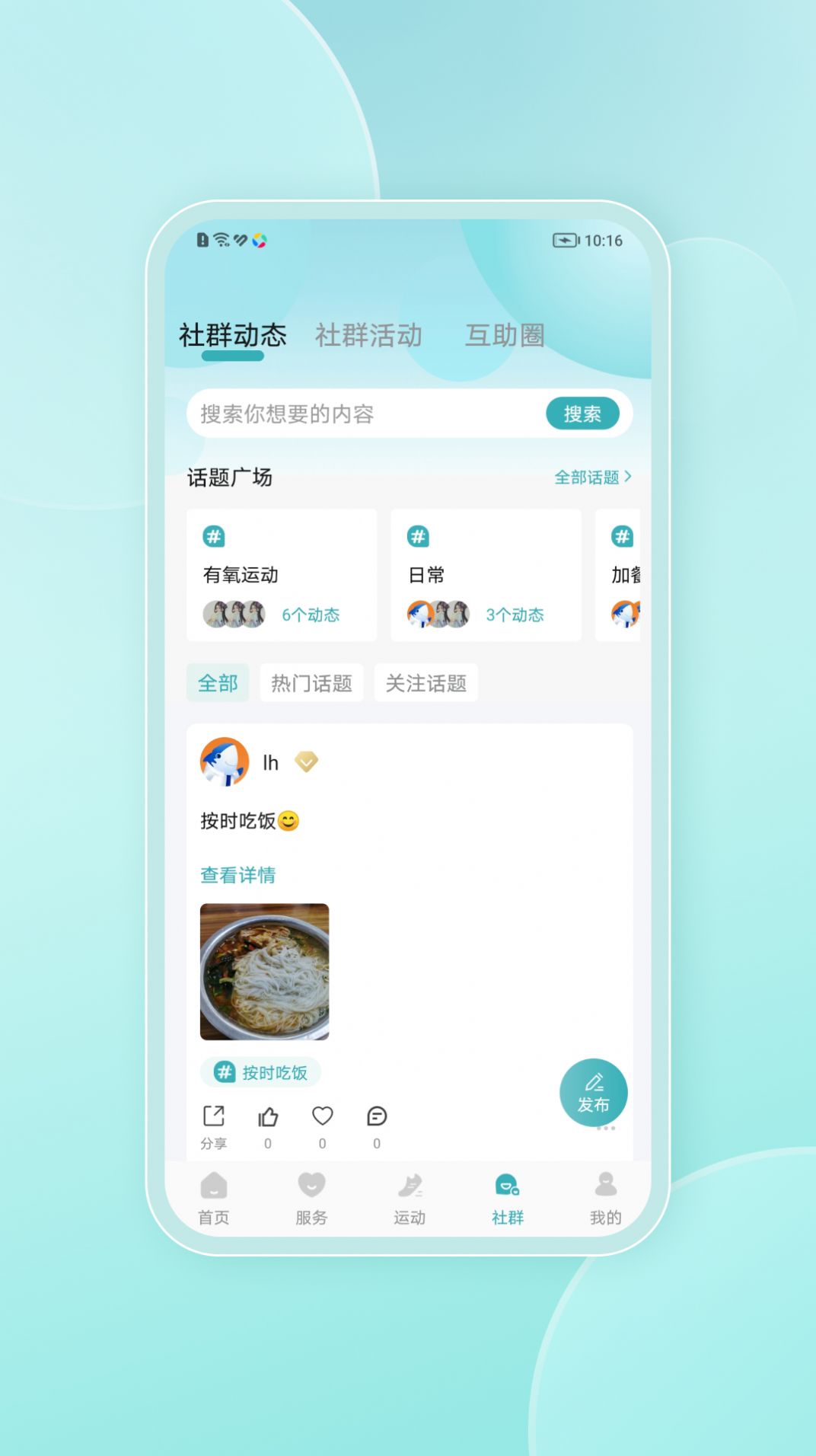 3、简洁直观的界面设计,易于用户操作和浏览,用户可以分享健康经验、交流心得。