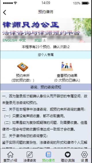 2、提供了完整的律师预约系统,提供了便捷的法律咨询服务;